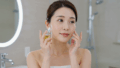 まず、両手の人差し指、中指、薬指を使って、頬骨の下から耳前に向かって優しく押し上げるように塗ります。次に、あごの先から耳下に向かってリンパの流れに沿ってなじませます。